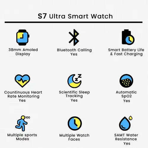 Ye smartwatch modern lifestyle ke liye perfect companion hai β chahe aap fitness enthusiast ho, busy professional ho ya student, S7 Ultra aapko smart connectivity, health tracking aur stylish look ek hi device me deta hai.